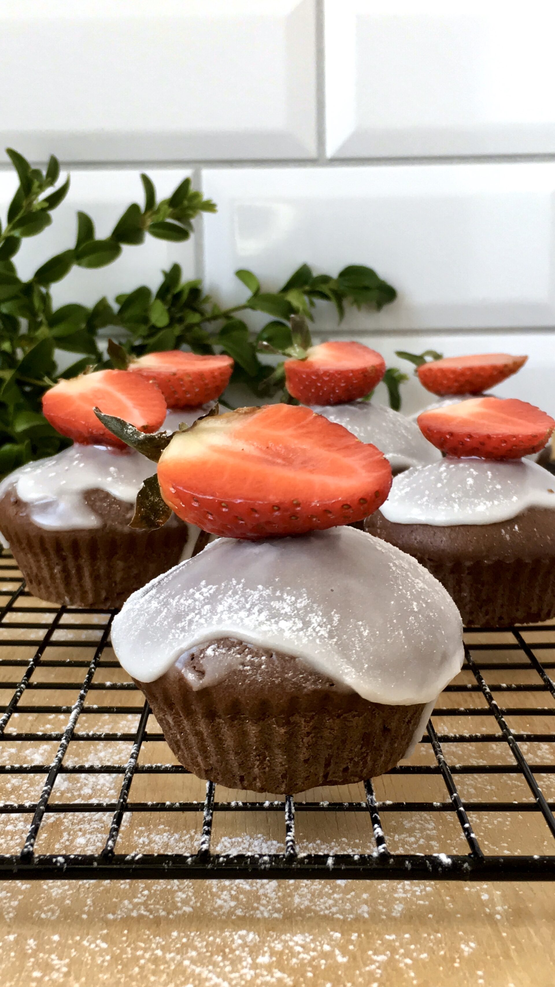 Super prosty przepis na pyszne babeczki czekoladowe, dekorowane lukrem i truskawkami. Kto nie lubi babeczek? 🙂 Przepis w formie wideo znajdziecie tutaj – klik.