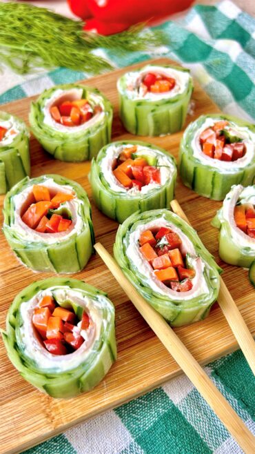 OGÓRKOWE SUSHI 🥒 Rewelacja! Zdrowe, pyszne, kolorowe 😍 Super przekąska! Jestem tym zachwycona! Idealnie sprawdzi się do lunchboxa do szkoły, do pracy ✅👍🏼 Do środka …