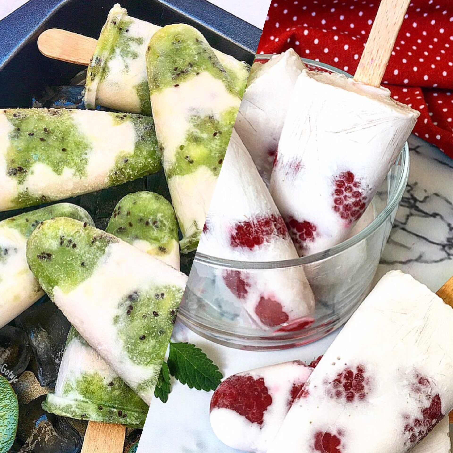 Robienie lodów na patyku w domu to dla mnie totalna nowość. Ponieważ sama dopiero odkrywam ten rodzaj deseru, połączyłam takie smaki które wyjątkowo lubię, czyli #1 Kiwi i Kokos. Po nich została mi druga połowa puszki mleczka kokosowego, dlatego szybko wykonałam kolejne pyszne lody, czyli smak #2 Kokos w połączeniu z malinami.
