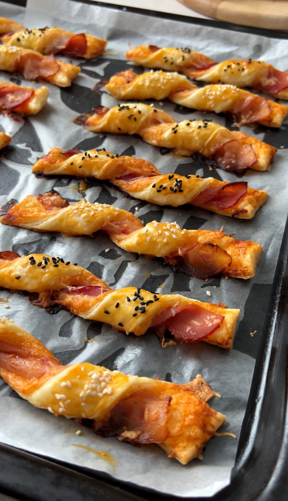 Szybka sylwestrowa przekąska z ciasta francuskiego. Szukasz sprawdzonej przekąski na sylwestra, która znika ze stołu szybciej niż fajerwerki o północy? ✨ Serowe paluchy z boczkiem to totalny hit każdej domówki – chrupiące z zewnątrz, serowe w środku i pełne aromatu wędzonego boczku 🤩